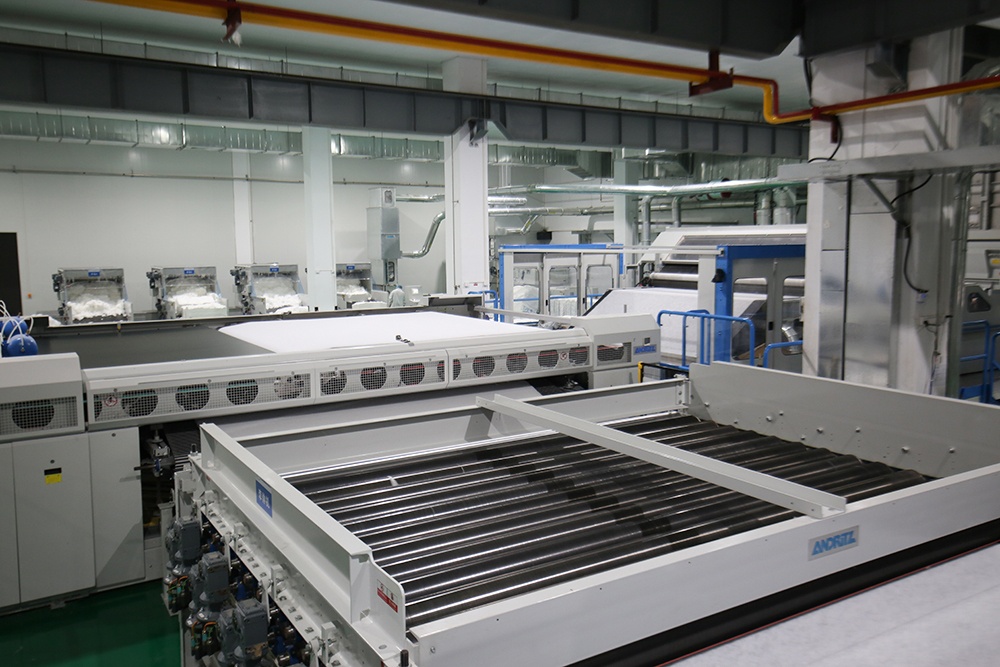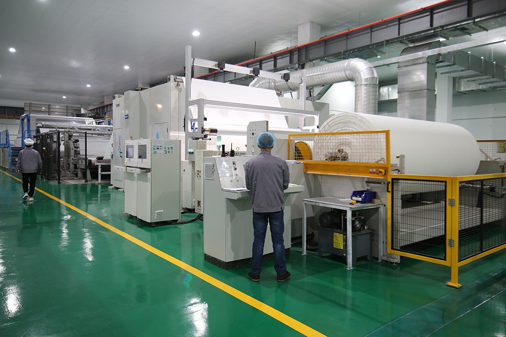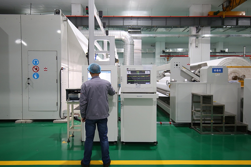 為更好地促進(jìn)企業(yè)的發(fā)展,公司于2020年12月進(jìn)行新的投入,引進(jìn)法國國際先進(jìn)水刺無紡布生產(chǎn)線和生產(chǎn)技術(shù),配備先進(jìn)的污點(diǎn)檢測儀和克重檢測儀等在線檢測儀器,現(xiàn)有國際標(biāo)準(zhǔn)自動化水刺無紡布生產(chǎn)流水線2條和干巾生產(chǎn)線2條,專業(yè)生產(chǎn)開發(fā)克重30克到100克㎡,門幅小于3300㎜的各種水刺產(chǎn)品及各種底部抽和小包抽棉柔巾,年生產(chǎn)能力10000多噸。本產(chǎn)品可廣泛應(yīng)用于干巾清潔類,濕巾衛(wèi)材類,美容護(hù)理類,醫(yī)用材料等。